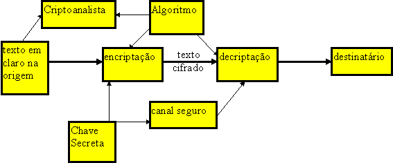 Para cifrar uma mensagem utiliza-se uma ou mais chaves (seqüência de caracteres) que serão embaralhadas com o texto ou mensagem original. Estas chaves devem ser mantidas em segredo, pois somente com o conhecimento delas é que se poderá decifrar a mensagem. Assim sendo, o primeiro tipo de algoritmo que surgiu foi o de chave única. Entende-se por chave secreta ou chave única o sistema que usa a mesma chave, a qual deve ser mantida em segredo, para encriptação e decriptação dos dados.
