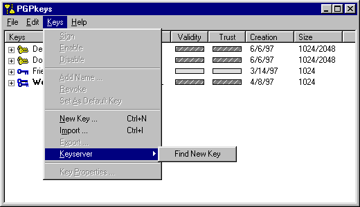 PGPkeys onde você pode examiná-las para ter certeza de que são válidas.