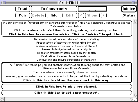Figure 15 Automatic creation of initial elements for a repertory grid