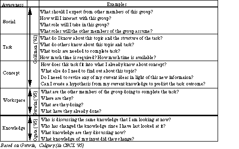 student awareness: social, task, and conceptual [Goldman 92]. These