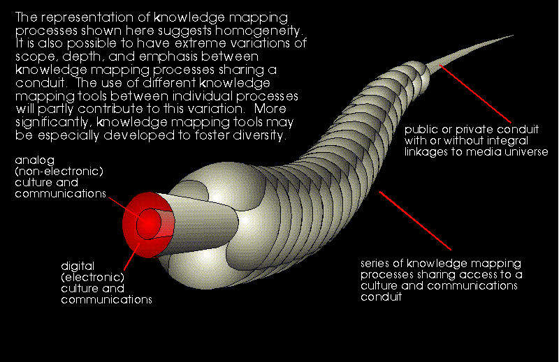 These constructs, which were developed during the initial stages of the nViews project, are likely to evolve as nViews proceeds. To a large extent, this tool and its application will also evolve to reflect the particular focus of the enterprise, or enterprises, employing it in their documentary knowledge mapping processes. A general schematic for how these processes might relate to analog and digital culture and communications is depicted in Figure 3.