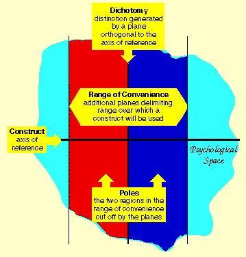 "the construct is a basis of making a distinction...not a class of objects, or an abstraction of a class, but a dichotomous reference axis" (Kelly, 1970)
